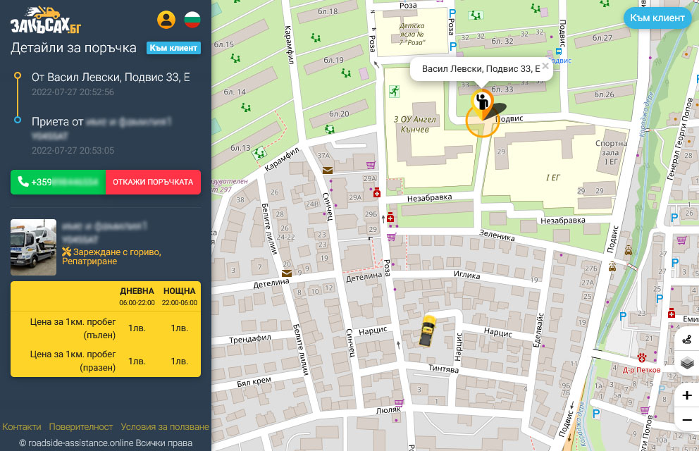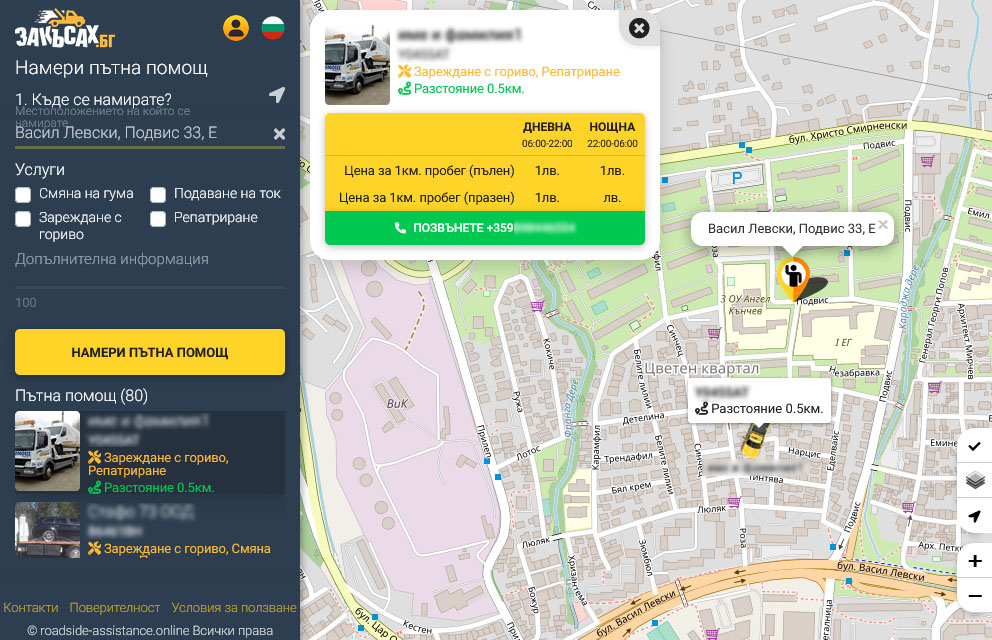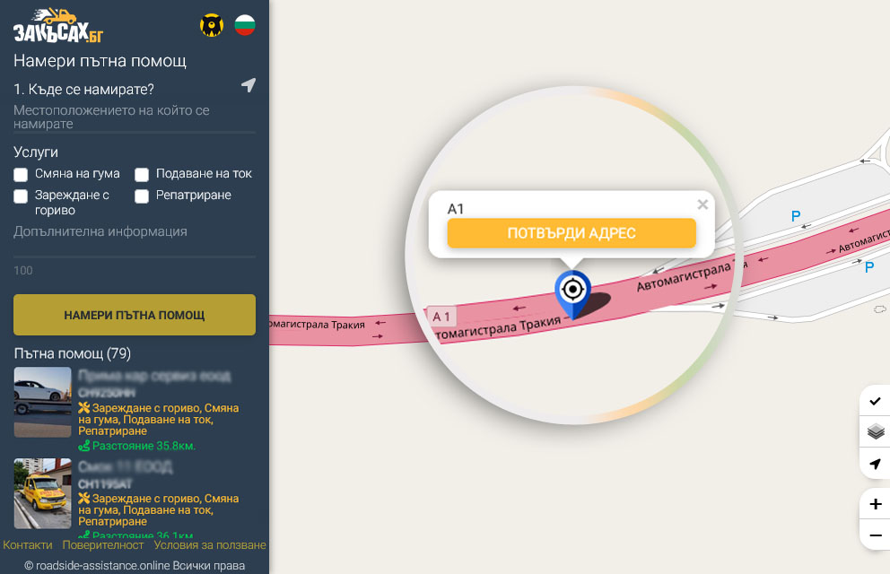 Платформа Ви дава възможност да повикате пътна помощ както онлайн, така и чрез директно позвъняване на избраната от Вас пътна помощ